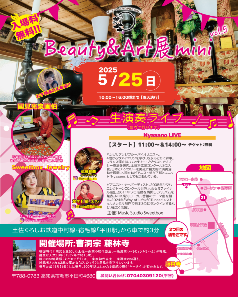 5月25日(日)、高知県宿毛市の【曹洞宗 藤林寺】にて開催される音楽イベント