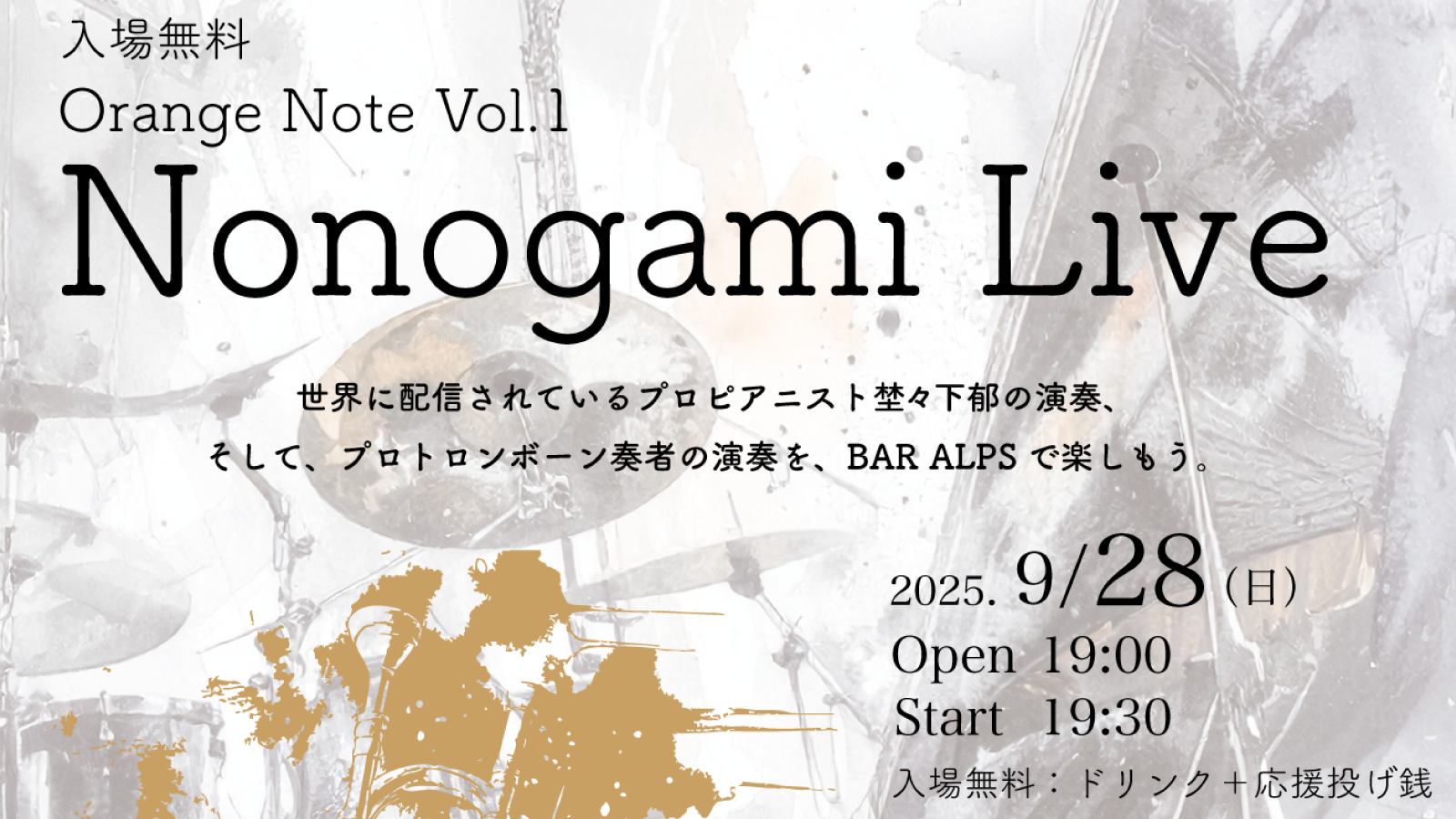 2025年9月28日(日)、BAR ALPSにて特別なライブイベント 「Orange Note Vol.1 – Nonogami Live」 を開催いたします。