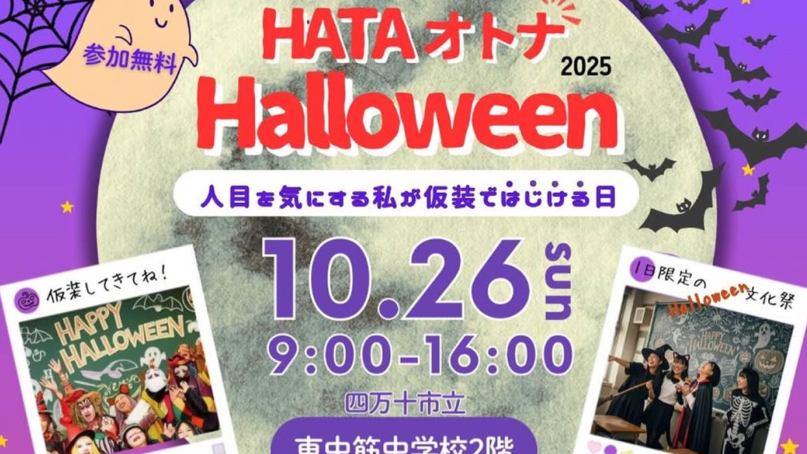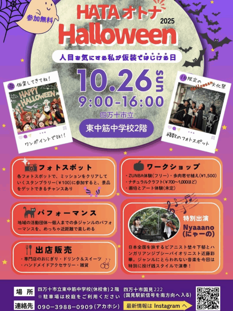 仮装してもしなくても楽しめる、大人も子どもも参加できるハロウィンイベントです。ぜひお気軽にお越しください!