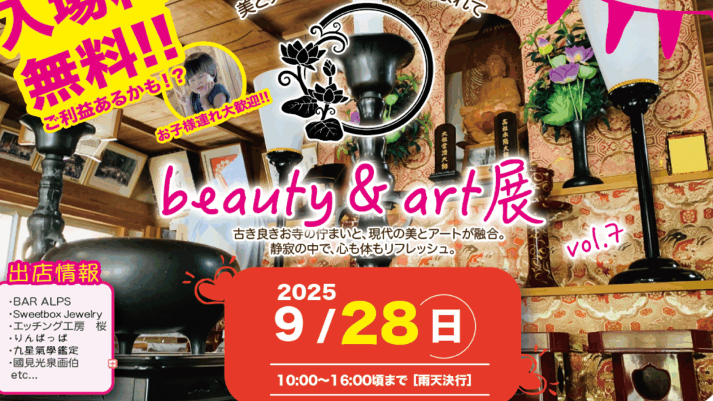【出店情報】beauty & art展 vol.7 開催のお知らせ〜美とアート、お寺の静寂に包まれて〜 2025年9月28日