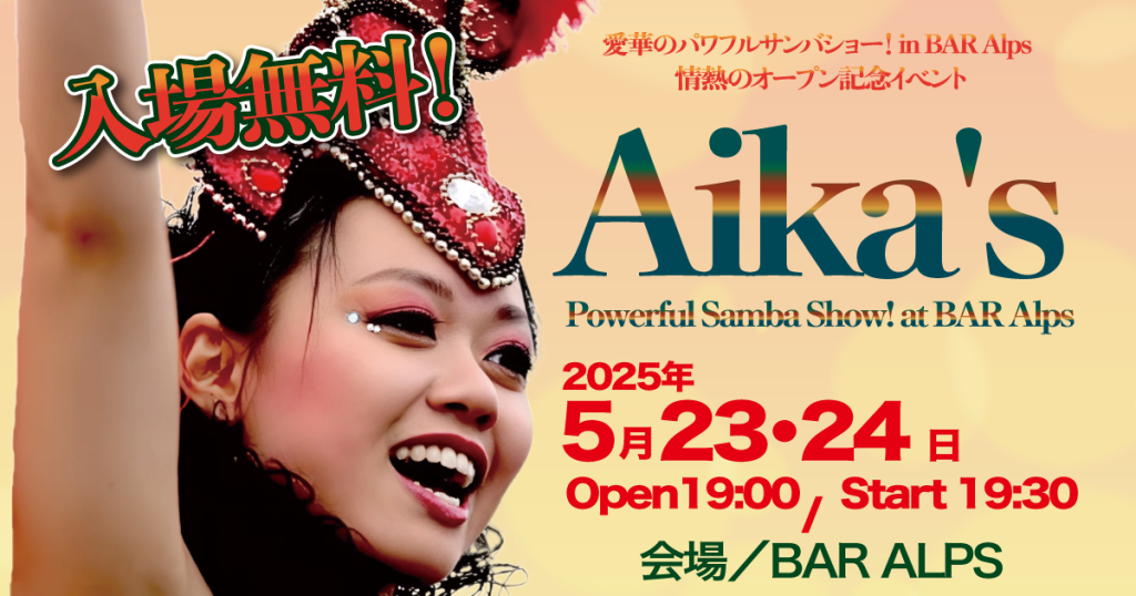 🌟【入場無料】Aika’s Powerful Samba Show!@BAR ALPS🌟